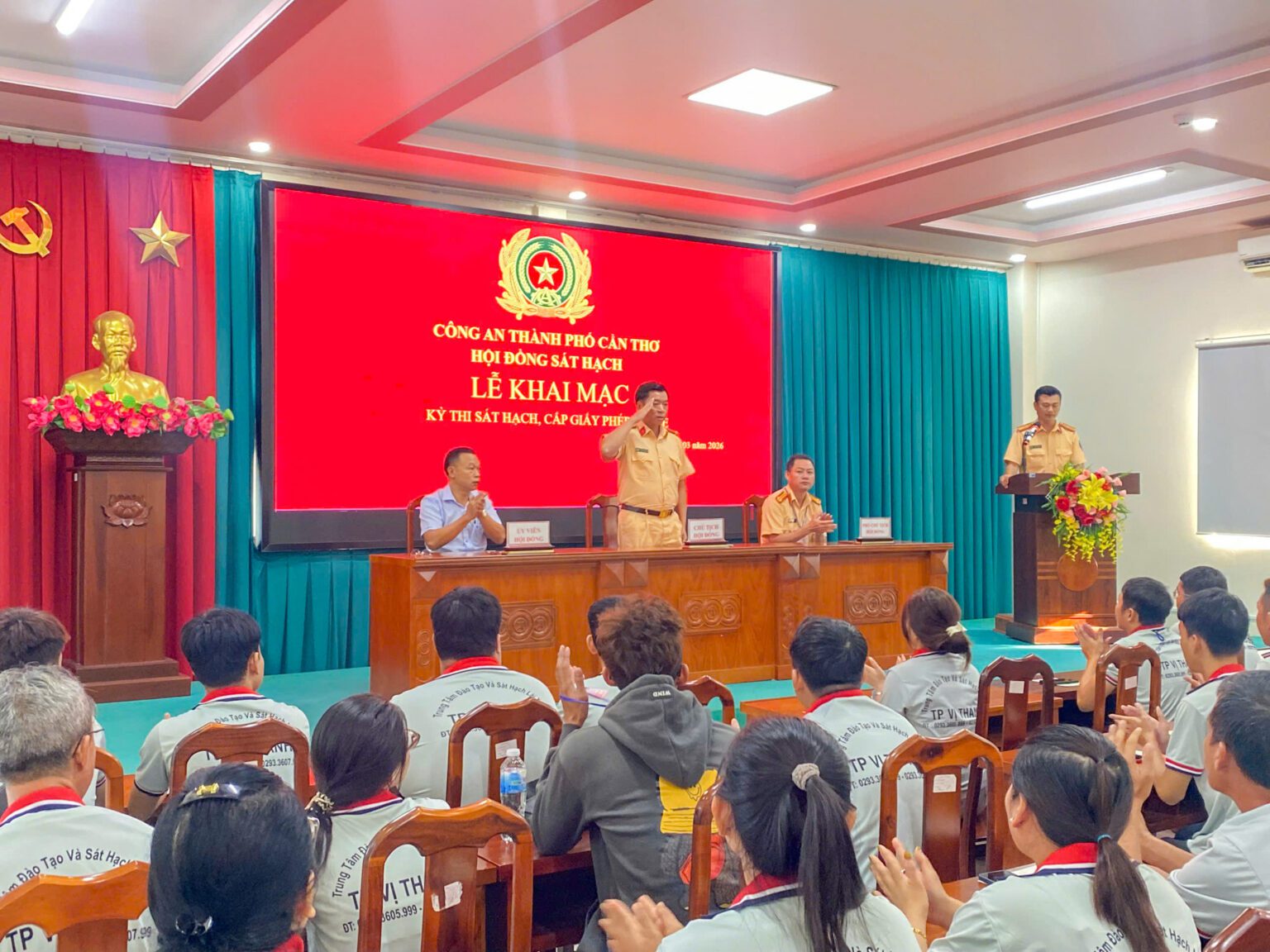 Tại hội trường trung tâm, các học viên đã có mặt đông đủ để lắng nghe Hội đồng sát hạch phổ biến quy chế thi và các lưu ý quan trọng về kỹ thuật điều khiển xe. Những lời dặn dò kỹ lưỡng từ các sát hạch viên không chỉ giúp học viên nắm vững quy trình mà còn là “liều thuốc” tinh thần hữu hiệu, giúp các thí sinh giải tỏa áp lực, giữ vững sự bình tĩnh và tự tin. Tinh thần kỷ luật và sự tập trung cao độ được thể hiện rõ nét qua từng gương mặt học viên trong suốt buổi khai mạc.